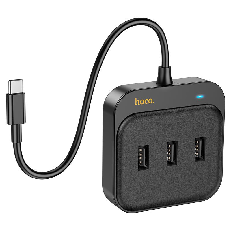HOCO HB35 is a compact and portable 4-in-1 Type-C hub designed to expand connectivity for USB-C devices. It features three USB-A 2.0 ports for connecting peripherals like keyboards, mice, and flash drives. Additionally, it includes an RJ45 Ethernet port for stable wired internet access. The hub supports data transfer speeds up to 480Mbps on USB ports and 100Mbps on the Ethernet port. Made from durable ABS plastic, it has a short integrated cable for easy connection. The lightweight and small design make it convenient for travel and everyday use.